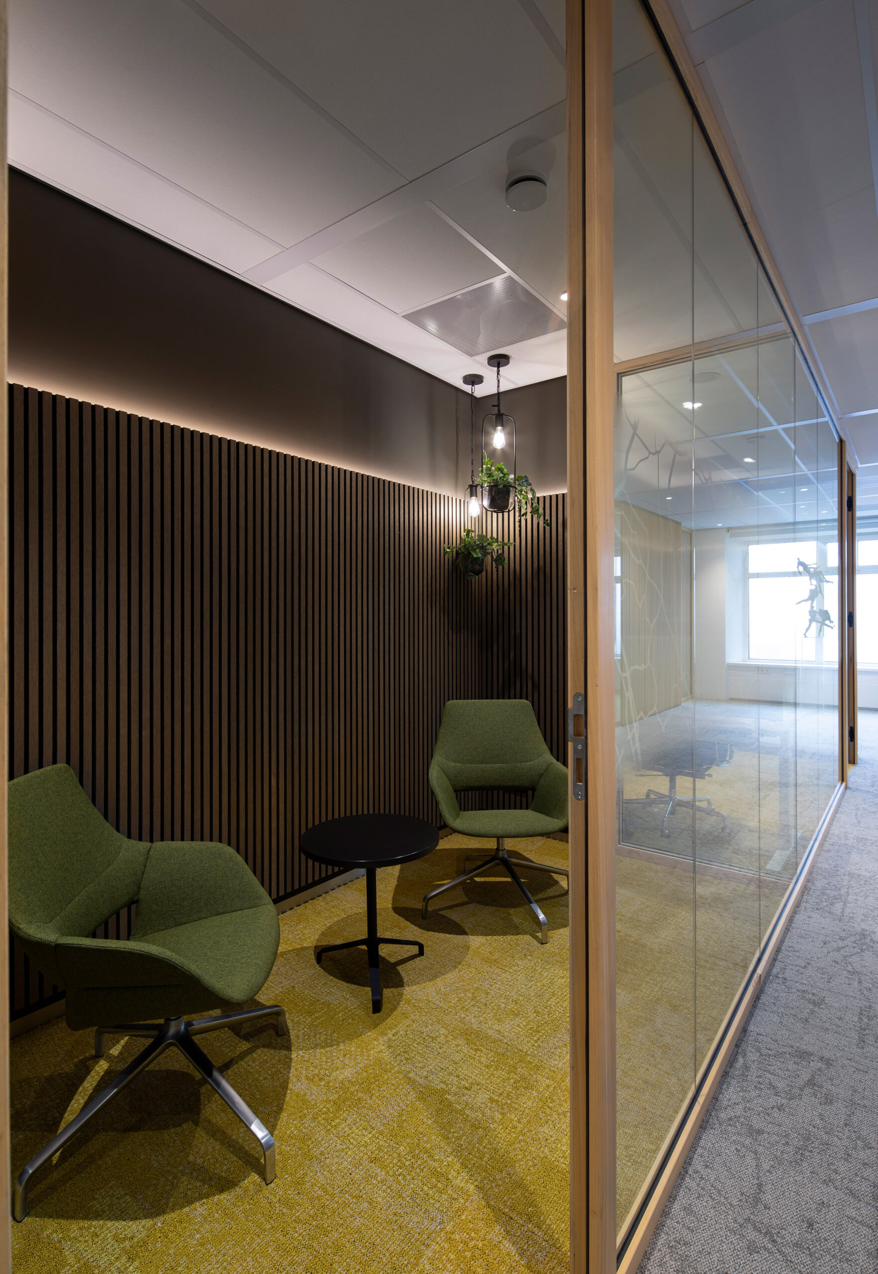 TBI staat voor duurzaam en met respect omgaan met wat er al is. De bestaande (hoogwaardige) materialen zijn daarom het uitgangspunt voor het ontwerp, de bekleding van de kern en de inleg in de vloer van het restaurant zijn daar voorbeelden van. Het natuurlijke van het hout combineren we met stoere materialen uit de bouwwereld, zoals staal en beton. Door veel planten toe te passen en dit door te trekken in de kleur groen, wordt het een warm en prettig geheel, waar alle gasten en medewerkers van TBI zich thuis voelen.