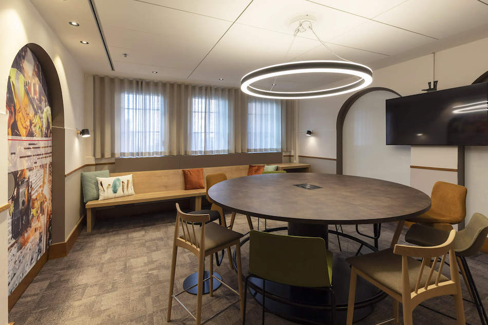 De Inktpot is een icoon in het centrum van Utrecht, waar in de plint de hele verdieping als vergadercentrum is ingezet. De strakke uniforme indeling van kamers voor 10 personen betekende vaak dat een overleg van 2 personen ook in zo’n kamer moest. De F vleugel is daarom nieuw ingedeeld, waardoor veel meer mogelijkheden om informeel te ontmoeten zijn gecreëerd. Kleinere kamers met een vrij toegankelijke voorruimte hebben zowel de bezettingsgraad als de sfeer flink verhoogd.